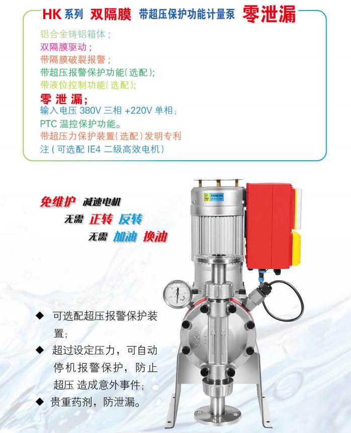 雙隔膜驅(qū)動,帶隔膜破裂報警。